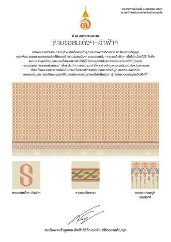 ลายพระราชทานประจำปี ๒๕๖๙ สมเด็จพระเจ้าลูกเธอ เจ้าฟ้าสิริวัณณวรี นารีรัตนราชกัญญา ทรงพัฒนาลวดลายจากลายประวัติศาสตร์ "ลายขอสมเด็จฯ" ผสมผสานกับ "ลายขอเจ้าฟ้าฯ" เพื่อให้คนไทยได้รำลึกถึงพระมหากรุณาธิคุณของ สมเด็จพระนางเจ้าสิริกิติ์ พระบรมราชินีนาถ พระบรมราชชนนีพ้นปีหลวง ทรงออกแบบ "ลายขอสร้อยทอง" เพื่อรำลึกถึง การประกวดผ้าที่พระตำหนักภูพานราชนิเวศน์ จังหวัดสกลนคร ที่สมเด็จพระบรมราชชนนีพ้นปีหลวง ได้พระราชทานสร้อยคอทองคำแก่ผู้ที่ชนะการประกวดผ้าและทรงต่อยอด "ดอกไม้พระนามาภิไธยสมเด็จพระบรมราชชนนีพันปีหลวง" สู่ "ลายพวงดอนญ่าควีนสิริกิติ์"