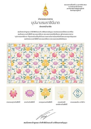 "ผ้าลายบุปผาบรมราชินีนาถ" เป็นลายพระราชทาน ประจำปี 2569 ที่สมเด็จพระเจ้าลูกเธอ เจ้าฟ้าสิริวัณณวรี นารีรัตนราชกัญญา ทรงต่อยอดดอกไม้พระนามาภิไธย สมเด็จพระนางเจ้าสิริกิติ์ พระบรมราชินีนาถ พระบรมราชชนนีพันปีหลวง สู่ผ้าลายพระราชทาน "บุปผาบรมราชินีนาถ" ที่ทุกลายล้วนเปี่ยมไปด้วยความหมายในการน้อมสำนึกถึงพระมหากรุณาธิคุณของสมเด็จพระนางเจ้าสิริกิติ์ พระบรมราชินีนาถ พระบรมราชชนนีพันปีหลวง ประกอบด้วย ลายดอนญ่าควีนสิริกิติ์ ลายบัวควีนสิริกิติ์ ลายกุหลาบควีนสิริกิติ์ ลายกล้วยไม้แคทลียาควีนสิริกิติ์ และลายขอสมเด็จฯ-เจ้าฟ้าฯ พระราชทานเมื่อวันที่ 20 กุมภาพันธ์ 2569 ณ มหาวิทยาลัยราชภัฏสุราษฎร์ธานี