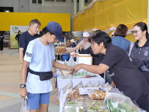 สำนักงานพัฒนาชุมชนอำเภอปากเกร็ด ได้นำกลุ่มออมทรัพย์เพื่อการผลิตในพื้นที่จำนวน 3 กลุ่มเข้าร่วมจัดแสดงและจำหน่ายสินค้าชุมชนภายในงาน ได้แก่ กลุ่มออมทรัพย์เพื่อการผลิตบ้านวัดแดง (ผลิตภัณฑ์ข้าวแต๋นน้ำแตงโม) กลุ่มออมทรัพย์เพื่อการผลิตบ้านแหลมเหนือ (ผลิตภัณฑ์แคบหมู) และกลุ่มออมทรัพย์เพื่อการผลิตคลองข่อยปันสุข (ผลิตภัณฑ์น้ำอ้อยคั้น) ซึ่งได้รับความสนใจจากผู้ร่วมงานเป็นจำนวนมาก