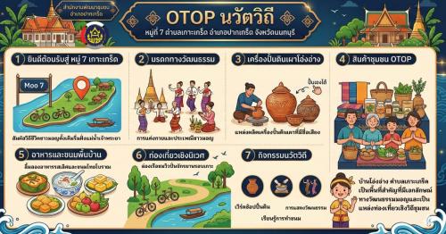 ขอเชิญทุกท่านร่วมเปิด ประสบการณ์ท่องเที่ยวเชิงวัฒนธรรม ณ หมู่บ้าน OTOP นวัตวิถี ม.7 บ้านโอ่งอ่าง ตำบลเกาะเกร็ด จังหวัดนนทบุรี