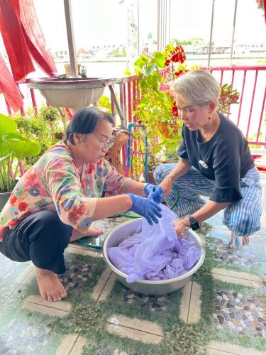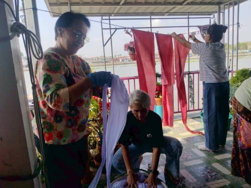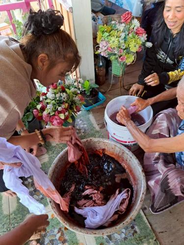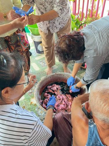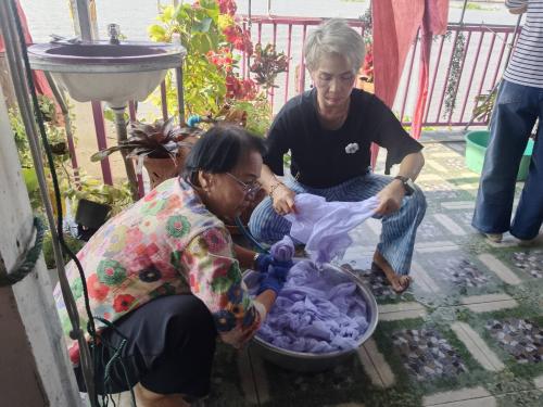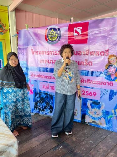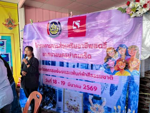 นางสาวบุตรตรา ใจพันธ์ พัฒนาการอำเภอปากเกร็ด มอบหมายนางสาวพิชญาภา มากสุวรรณ นักวิชาการพัฒนาชุมชนชำนาญการ พร้อมด้วยเจ้าหน้าที่พัฒนาชุมชนอำเภอปากเกร็ด ร่วมสนับสนุนและขับเคลื่อนโครงการได้รับการสนับสนุนงบประมาณประเภทเงินอุดหนุน (ทุนให้เปล่า) จากกองทุนพัฒนาบทบาทสตรี กลุ่มเป้าหมาย สตรีในเขตเทศบาลนครปากเกร็ด โดย นางสุขศรี เดชฤดี ร่วมกับสมาชิกกลุ่มสตรี ดำเนินโครงการโดยมีวัตถุประสงค์เพื่อส่งเสริมและพัฒนาความรู้ ทักษะด้านการย้อมและเพ้นท์ผ้าจากสีธรรมชาติ ตลอดจนเสริมสร้างศักยภาพสตรีให้สามารถนำไปประกอบอาชีพและสร้างรายได้อย่างยั่งยืน