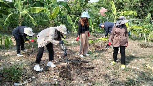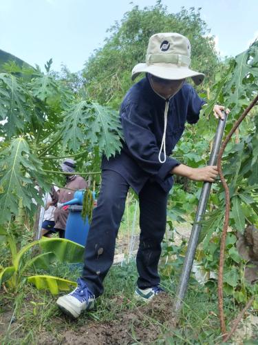 เวลา14.30น. นางสาวบุตรตรา ใจพันธ์ พัฒนาการอำเภอปากเกร็ด พร้อมด้วยเจ้าหน้าที่พัฒนาชุมชน ลงพื้นที่ร่วมกับ นางสาวปสุตา บุญมาประเสริฐ ผู้ใหญ่บ้านหมู่ที่ 5 ตำบลคลองพระอุดม ผู้นำ อาสาพัฒนาชุมชน (ผู้นำอช.) และชาวบ้าน ร่วมกันเตรียมพื้นที่จัดกิจกรรม “ปลูกผักกลางบ้าน ครั้งที่ 2”