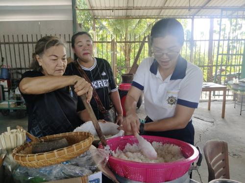 2. การบรรยายให้ความรู้ควบคู่กับการฝึกปฏิบัติการทำ “ข้าวแช่” อาหารพื้นถิ่นไทย โดยนางวาสนา บุตรละคร วิทยากรผู้มีความเชี่ยวชาญ